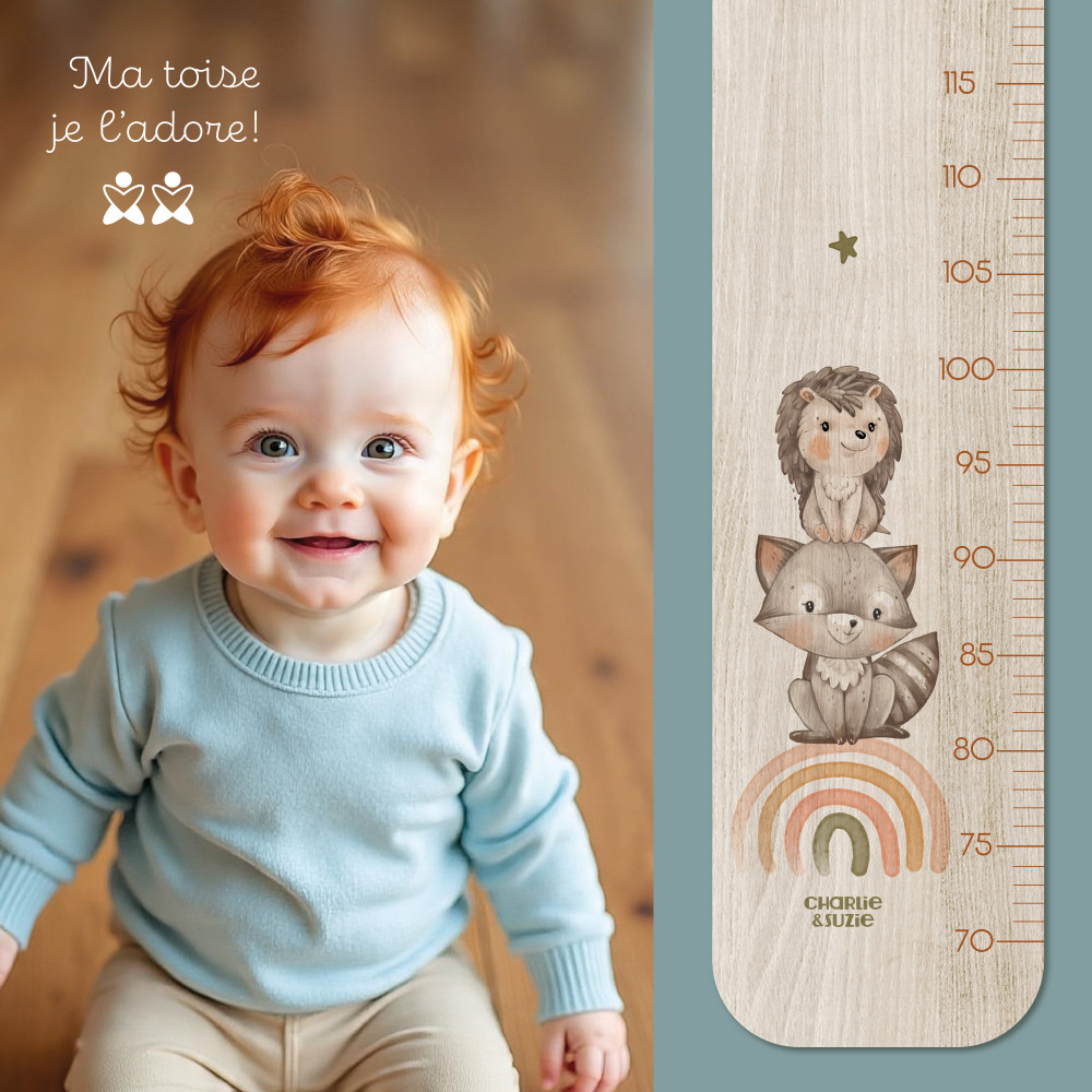 Découvrez la magie de voir grandir vos enfants avec notre toise Forêt Raton & Hérisson de Charlie & Suzie, une création française qui apporte une touche de gaieté et de tendresse dans leurs univers.
