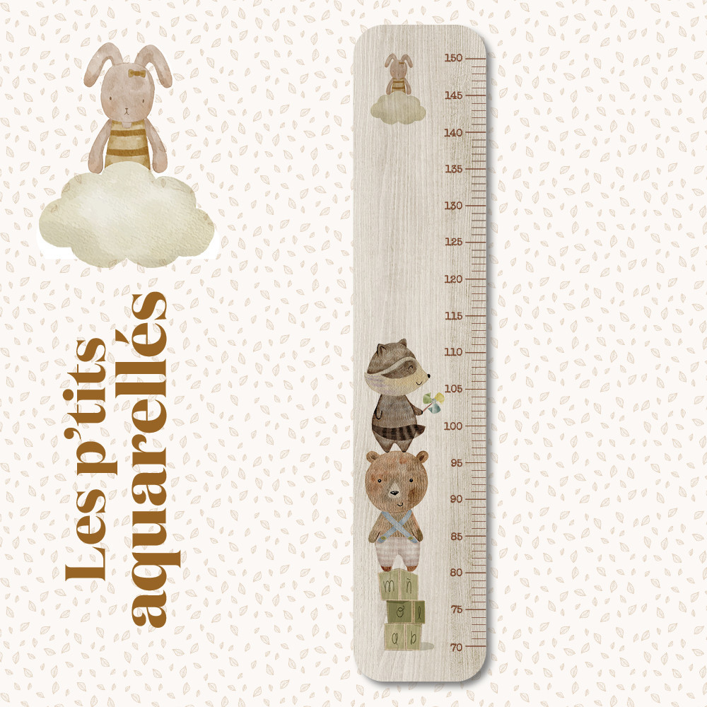 Découvrez la magie de voir grandir vos enfants avec notre toise Les Jouets Ours & Raton de Charlie & Suzie, une création française qui apporte une touche de gaieté et de tendresse dans leurs univers.