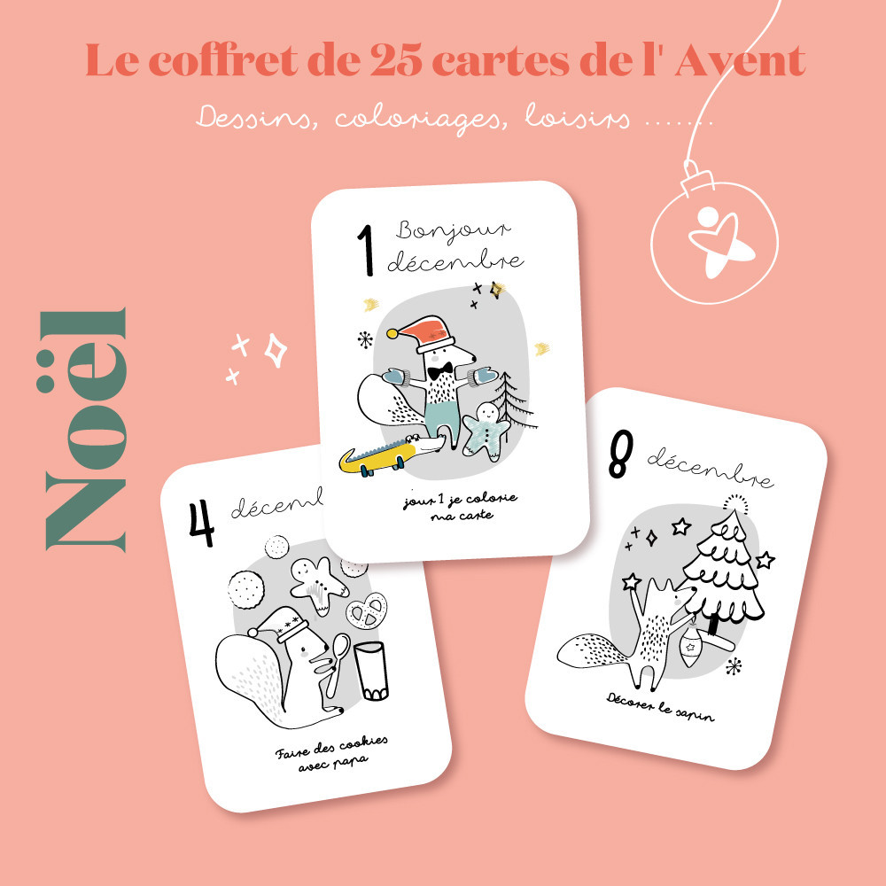 Ce coffret comprend 25 grandes cartes décoratives à colorier chaque jour de l’Avent. Différents thèmes défilent pendant cette période festive : Dessins, coloriages, atelier cuisine, atelier créatif, chant de Noël ou encore lettre au Père Noël.