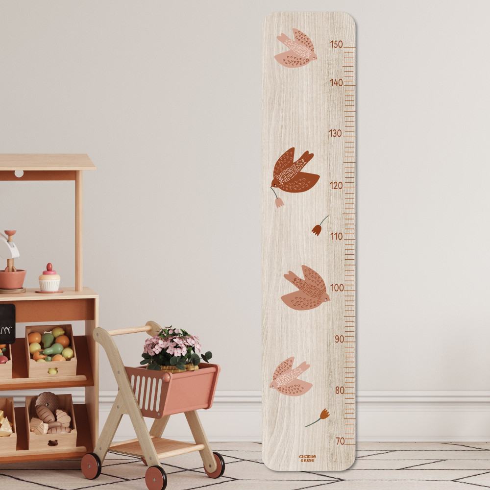 Découvrez la magie de voir grandir vos enfants avec notre toise Les colombes Paloma de Charlie & Suzie, une création française qui apporte une touche de gaieté et de tendresse dans leurs univers.