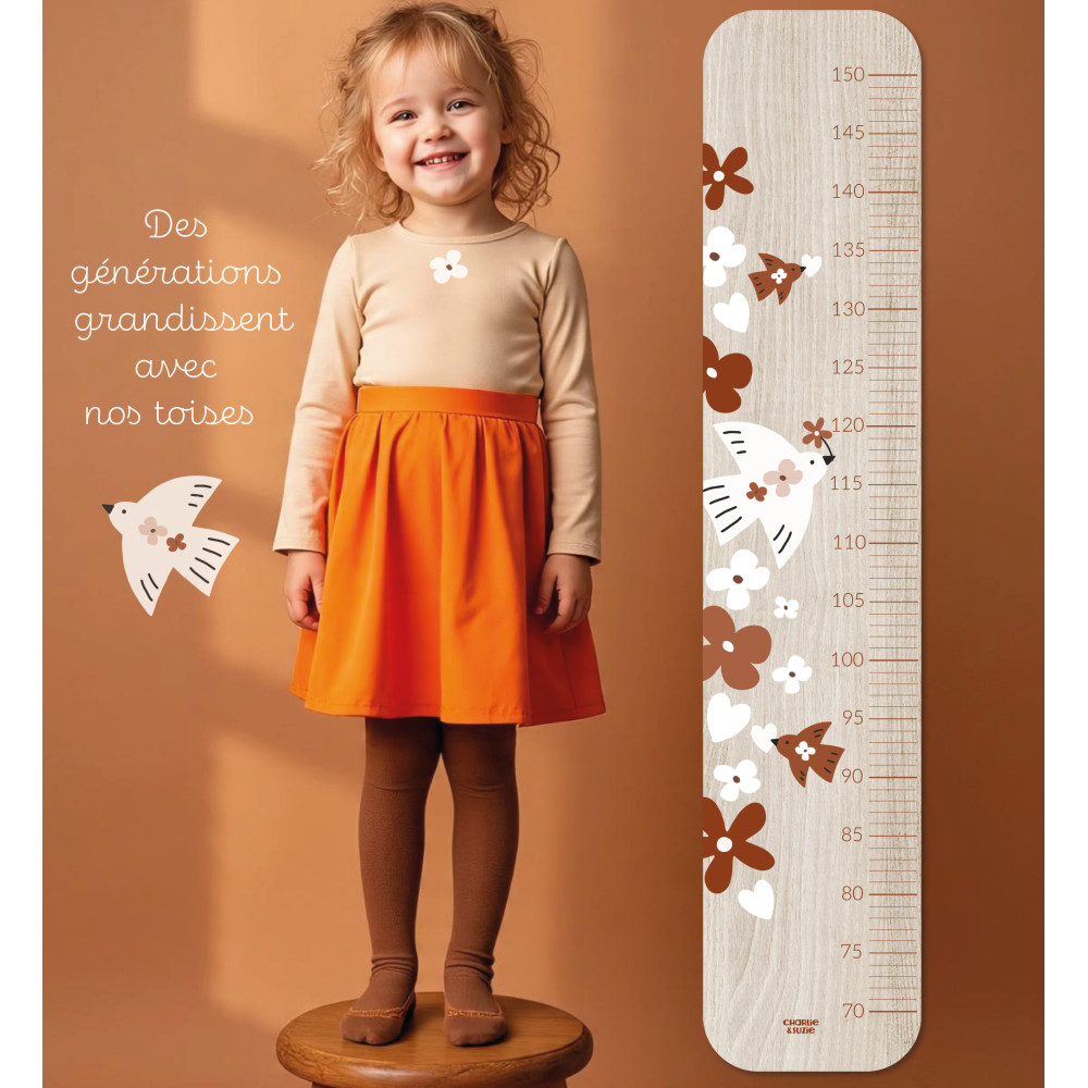 Découvrez la Toise en Bois Emma - Oiseau Liberté, bien plus qu’un simple outil de mesure. Chaque centimètre gravé raconte l’histoire de la croissance de votre enfant, accompagnée par la douceur d’un oiseau symbolisant la liberté et l’épanouissement. Son design apporte une touche joyeuse et chaleureuse à la chambre, transformant chaque mesure en un moment magique. Offrez à votre enfant un repère unique, aussi beau qu’émouvant, pour suivre ses progrès avec amour et légèreté.