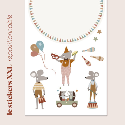 Plongez dans un monde enchanté avec Circus, un compagnon de décoration XXL qui transformera votre espace. Cette planche de stickers invite magie et fantaisie dans votre foyer.
