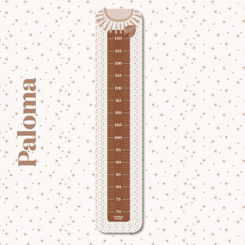 Découvrez la magie de voir grandir vos enfants avec notre toise Paloma Soleil liberty de Charlie & Suzie, une création française qui apporte une touche de gaieté et de tendresse dans leurs univers.