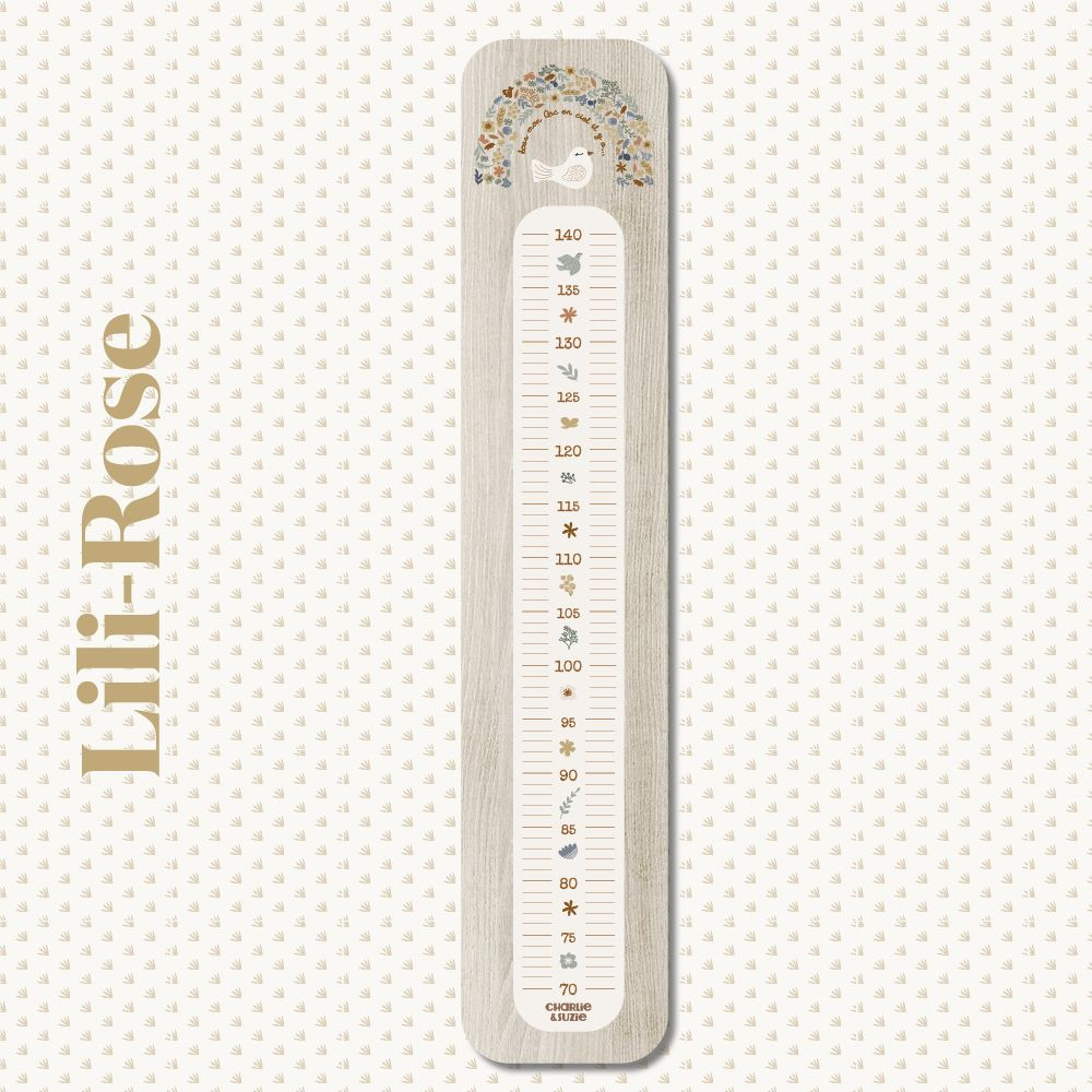 Découvrez la magie de voir grandir vos enfants avec notre toise Rainbow Floral Lili-Rose de Charlie & Suzie, une création française qui apporte une touche de gaieté et de tendresse dans leurs univers.